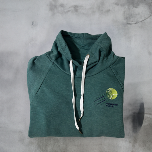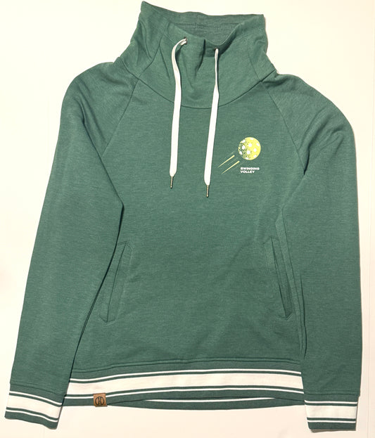 Women’s Funnel Neck Pullover Dark Green [Pickleball Logo] Swinging Volley