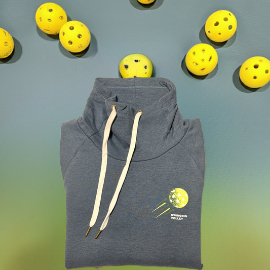 Women’s Funnel Neck Pullover Storm Heather [Pickleball Logo] Swinging Volley
