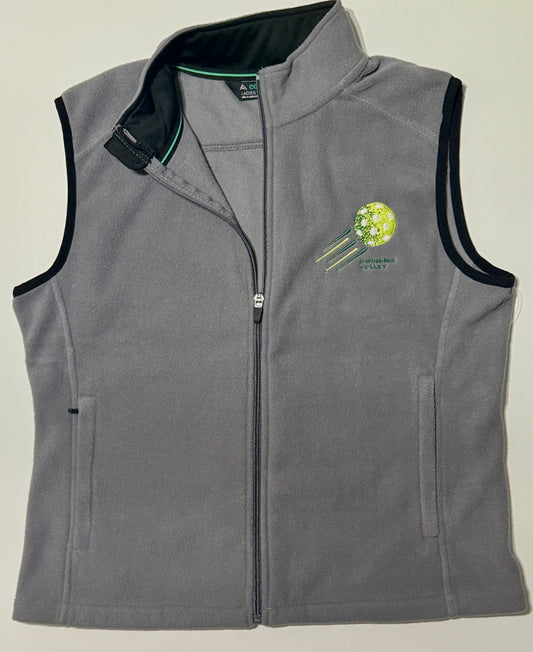 Women’s Fleece Vest Graphite [Pickleball Logo] Swinging Volley