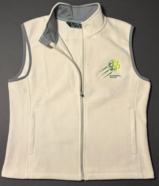 Women’s Fleece Vest White [Pickleball Logo] Swinging Volley